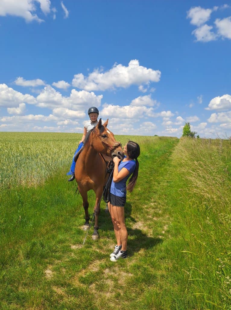 Neben jeder Menge Spaß und schönen Momenten, lege ich sehr gerne auch den Fokus auf körperliche Übungen. Durch mein vorangegangenes duales Studium zur betrieblichen Gesundheitsmanagerin, bin ich eine kleine Expertin der menschlichen Anatomie und weiß genau, wie wir die unterschiedlichen Muskelgruppen gezielt ansteuern können – ohne dass es sich nach einer anstrengenden Therapie anfühlt, aber dennoch effizient ist. Ich liebe die Verbindung zwischen KörperGeist und Seele – mit der Reittherapie können wir alles in Einklang bringen!